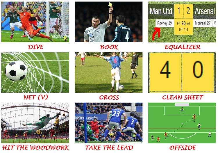 | Hit the woodwork : ghi bàn vào khung thành | Offside : việt vị |