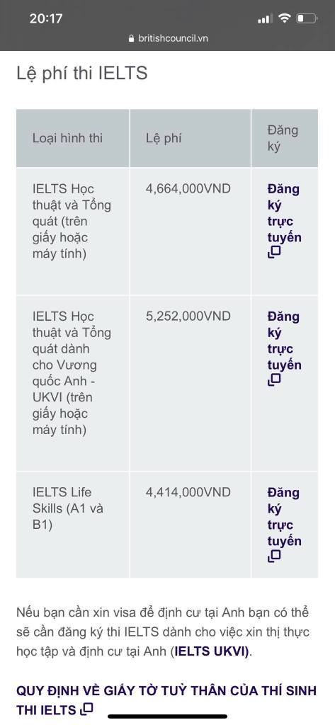 Ở VN có thể thi ở IDP và British Council, GGV khuyến nghị các bạn có thể thi chuẩn luôn ở BC. https://ieltsregistration.britishcouncil.org/orsnbc?country=vn