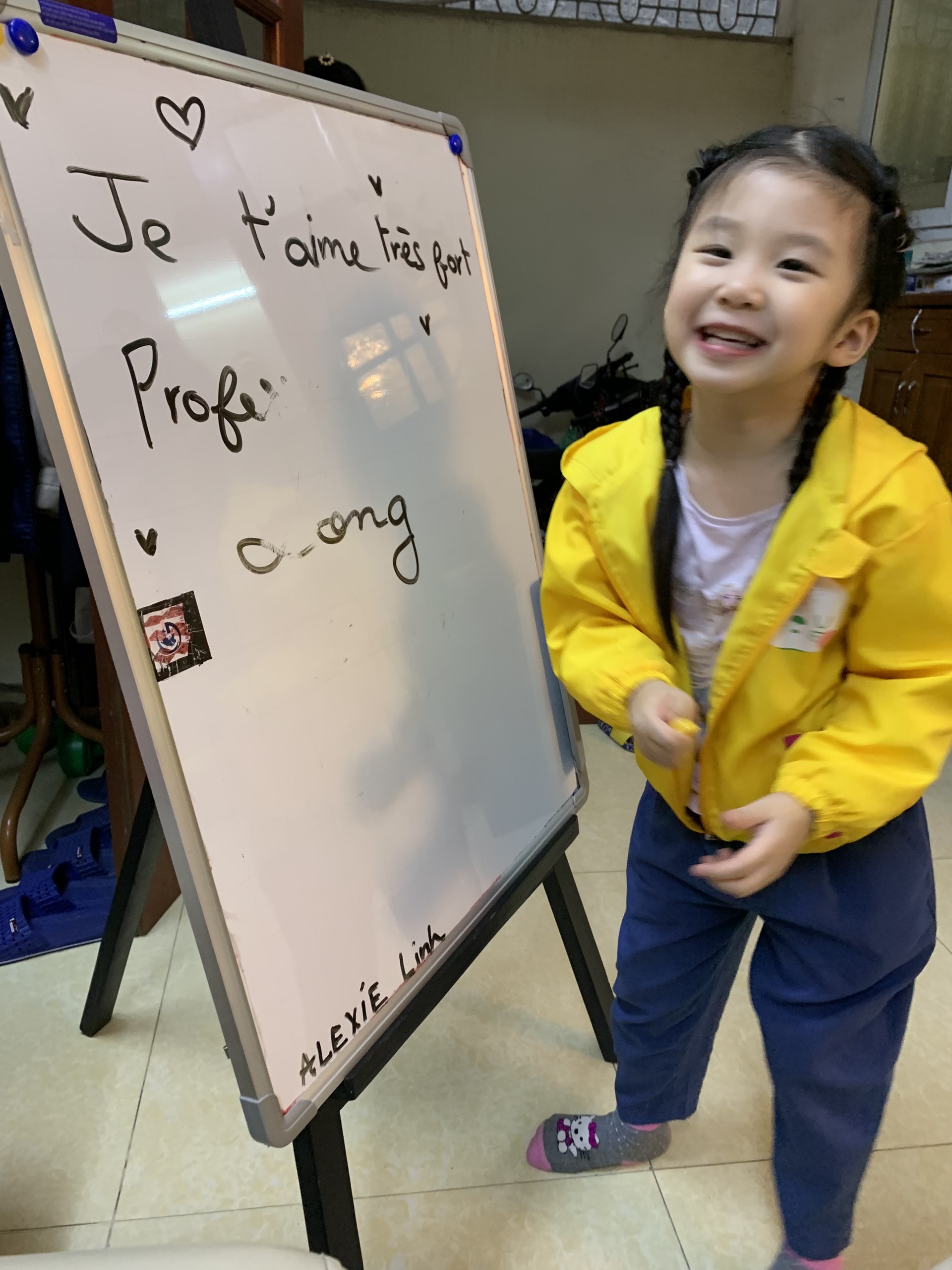 Bé Bảo Mi 5 tuổi hiện đang học tiếng Pháp tại GGV