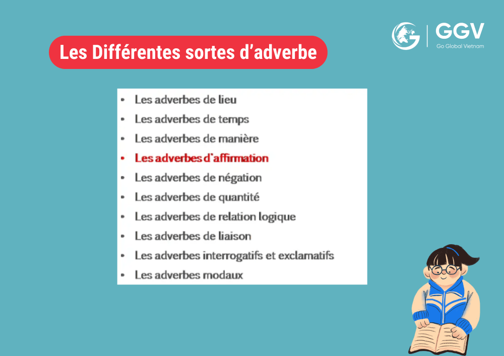 - Affirmation : Ils expriment une certitude ou un doute. Exemples : certainement, sûrement, assurément, probablement, sans doute, etc.