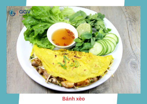 Le banh xeo est une crêpe farcie avec les ingrédients comme le porc, les crevettes, des oignons, les germes de soja et des champignons. Quand vous le mangez, vous pouvez l’accompagner avec les feuille de laitue, de la menthe ou encore de la coriander. N’oubliez pas de les tremper dans la sauce à base de nuoc mam, de sucre, de citron et un peu de piment.