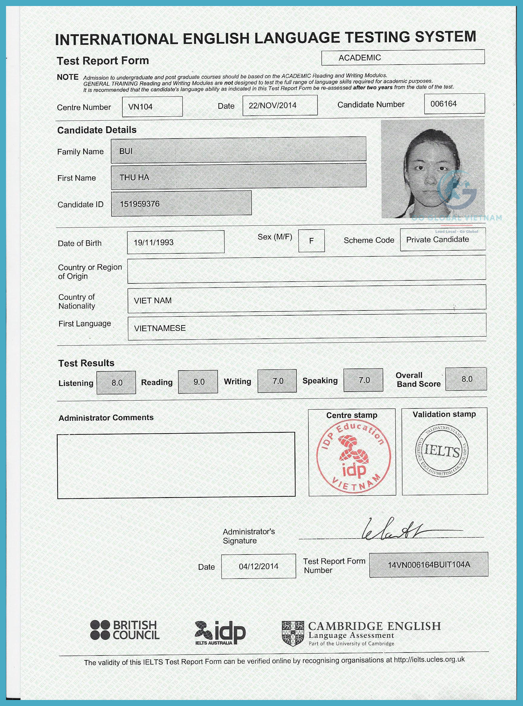 Cô Giang GGV đang làm việc tại Hà Lan, đã có nhiều năm kinh nghiệm làm việc tại Trường Quốc tế Anh, Hà Nội; Universal Language Academy; ATEN English Center; Indec. Cô đạt IELTS 8.0 ngay từ hồi còn là sinh viên và đến nay đã dạy cho hơn 500 học viên vượt qua tốt kỳ thi IELTS.